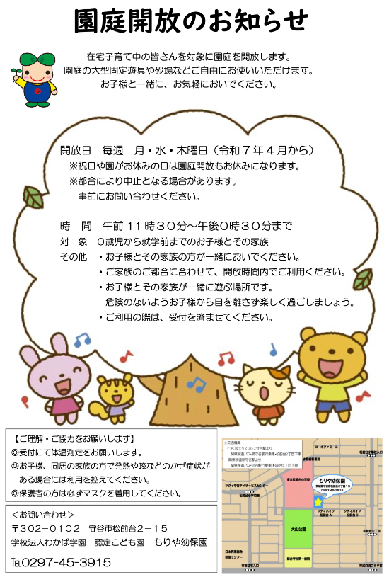 もりや幼保園は茨城県守谷市松前台にある、子ども達の笑顔が溢れる幼保園です。